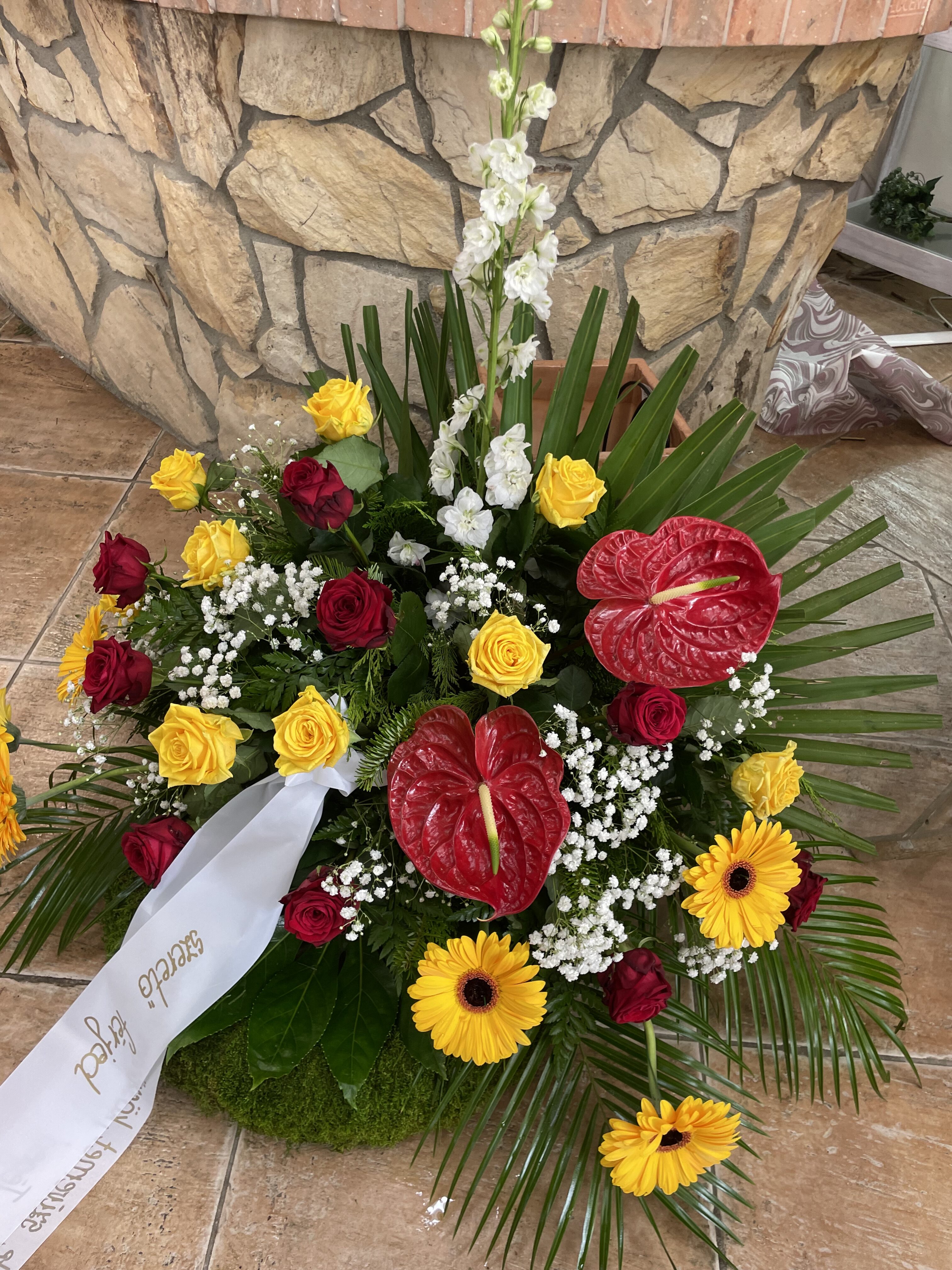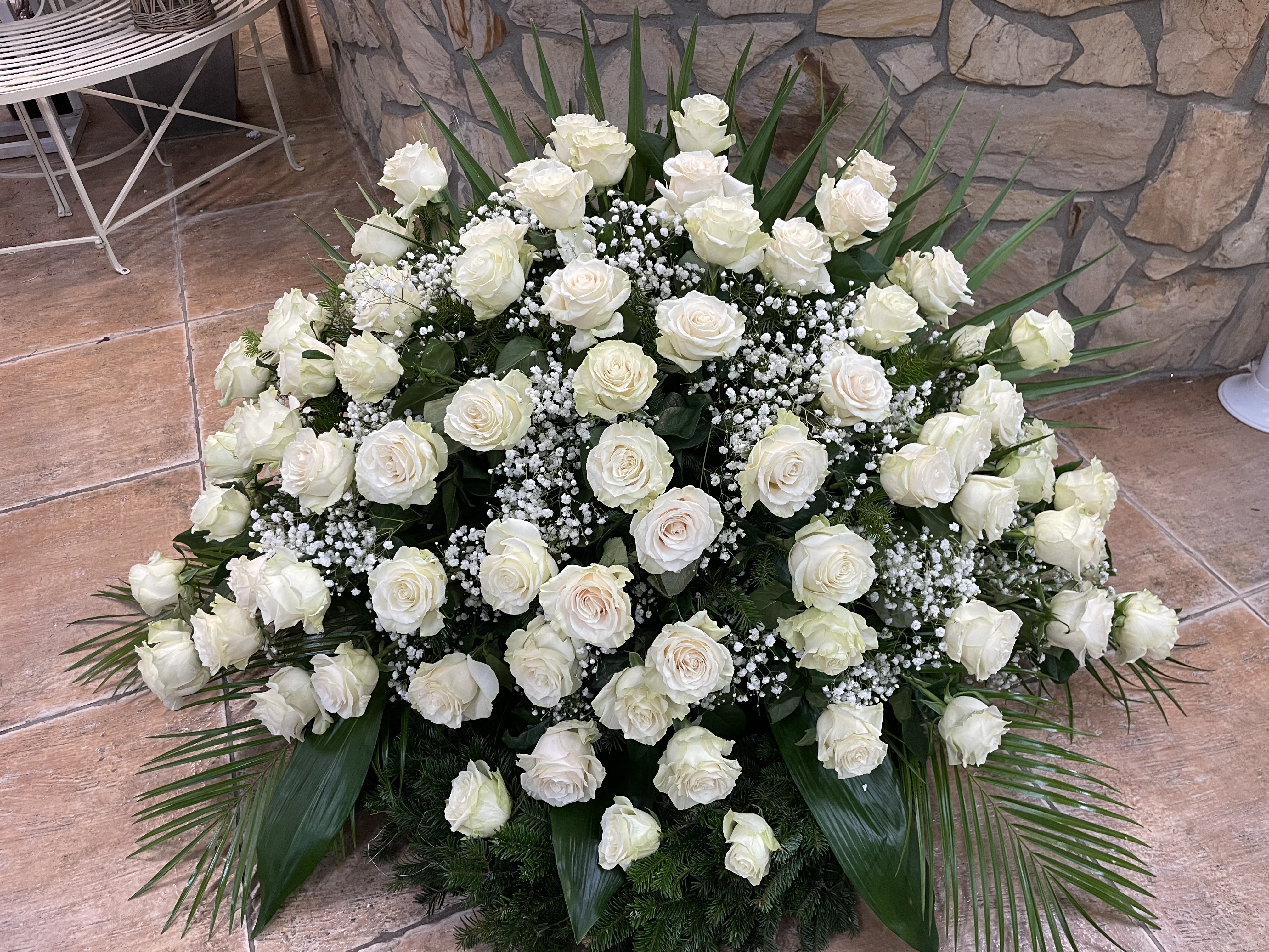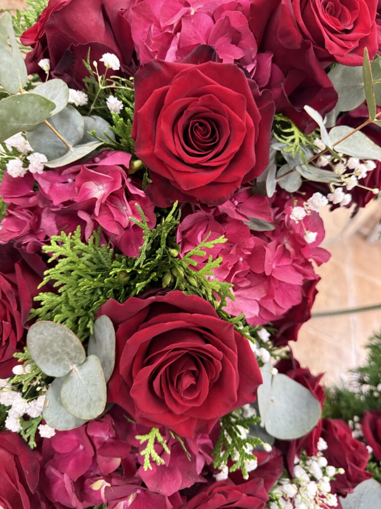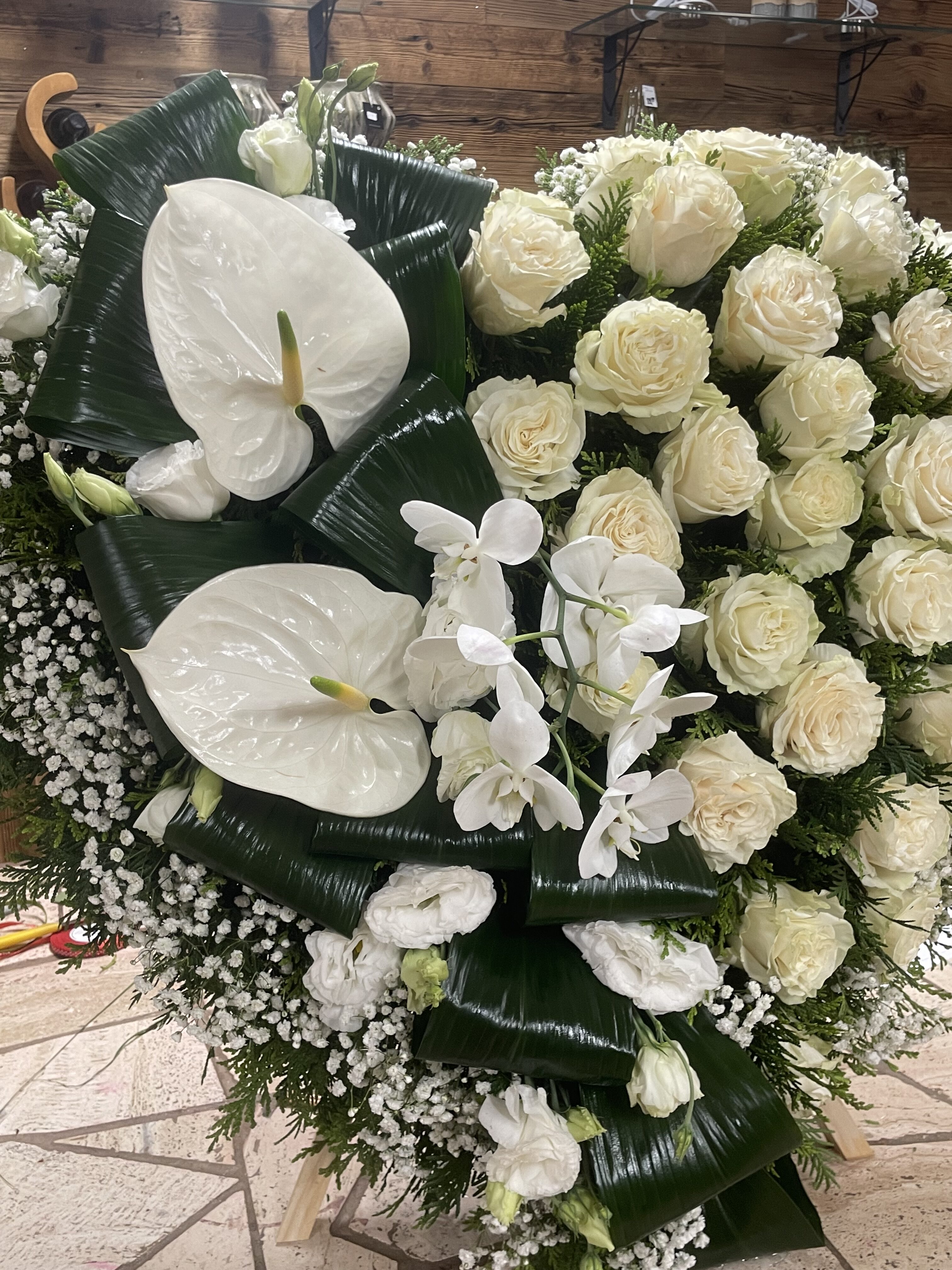 Naše vence sú starostlivo aranžované z čerstvých kvetov a zelene, aby vyjadrovali úprimnú sústrasť a dôstojnosť. Používame kvety s hlbokou symbolikou – biele ľalie na vyjadrenie pokoja a čistoty, ruže na znak lásky a úcty, chryzantémy na večnú spomienku. Každý veniec je navrhnutý s dôrazom na estetiku a pietu, aby dôstojne dopĺňal poslednú rozlúčku.