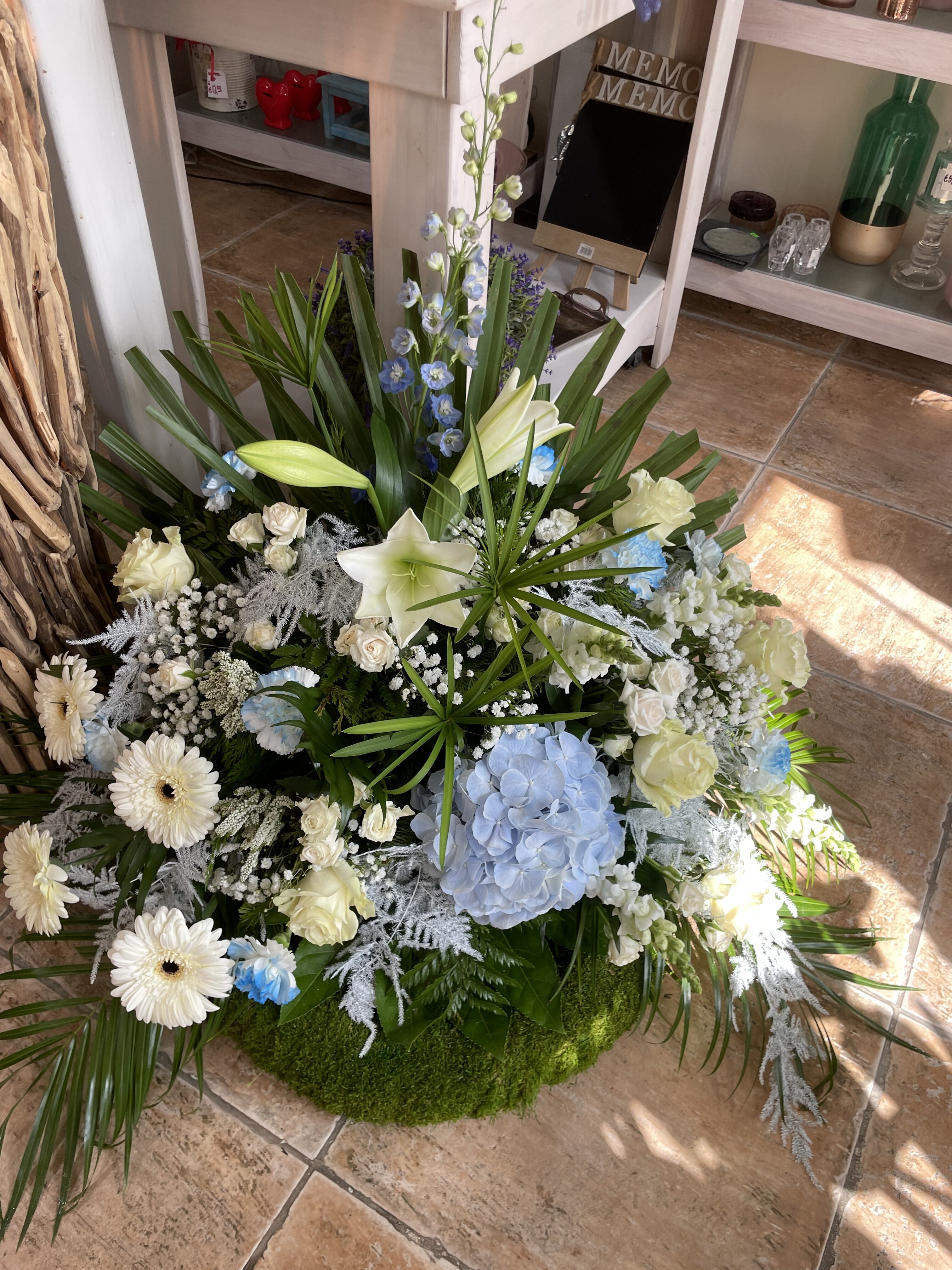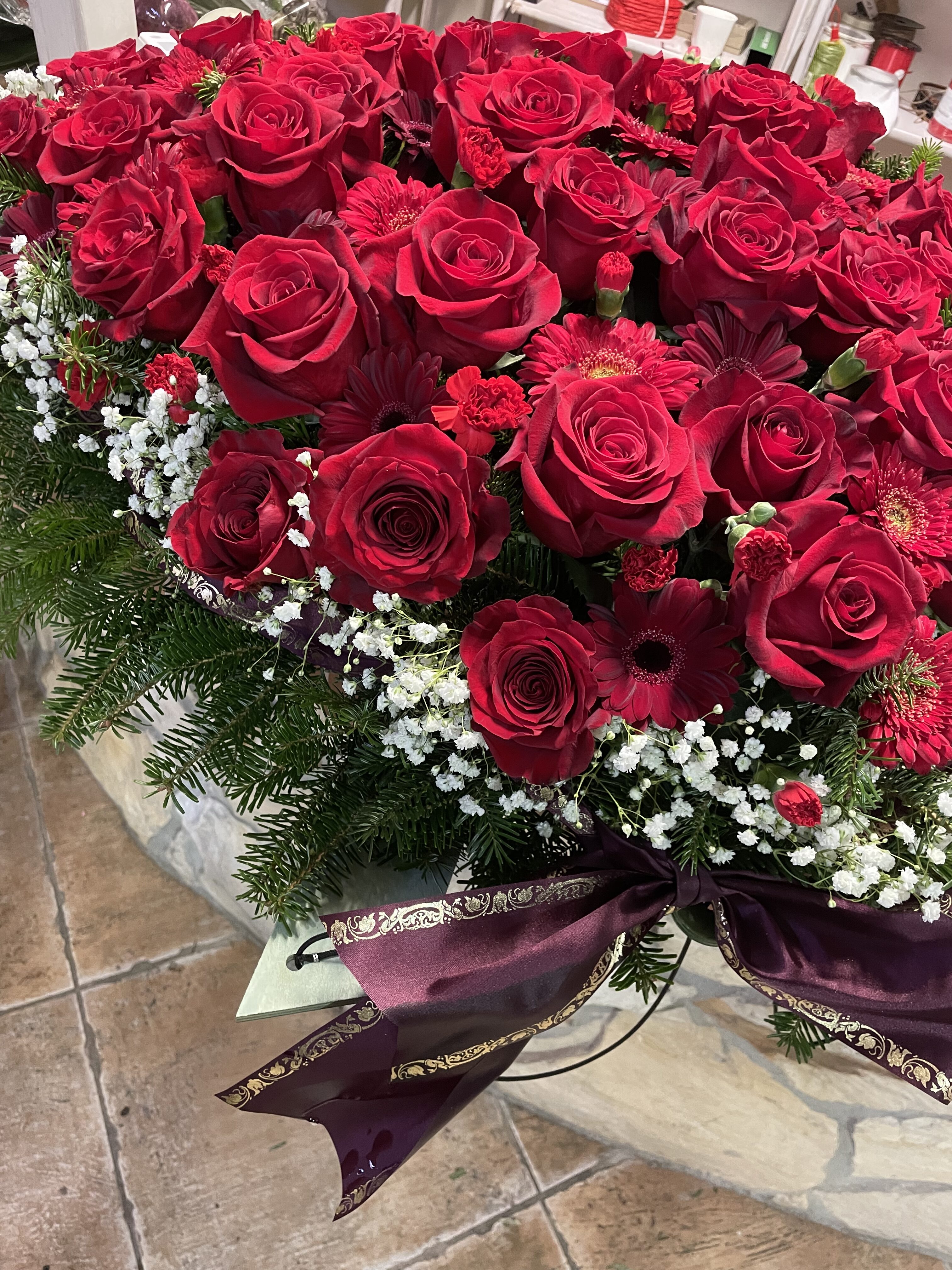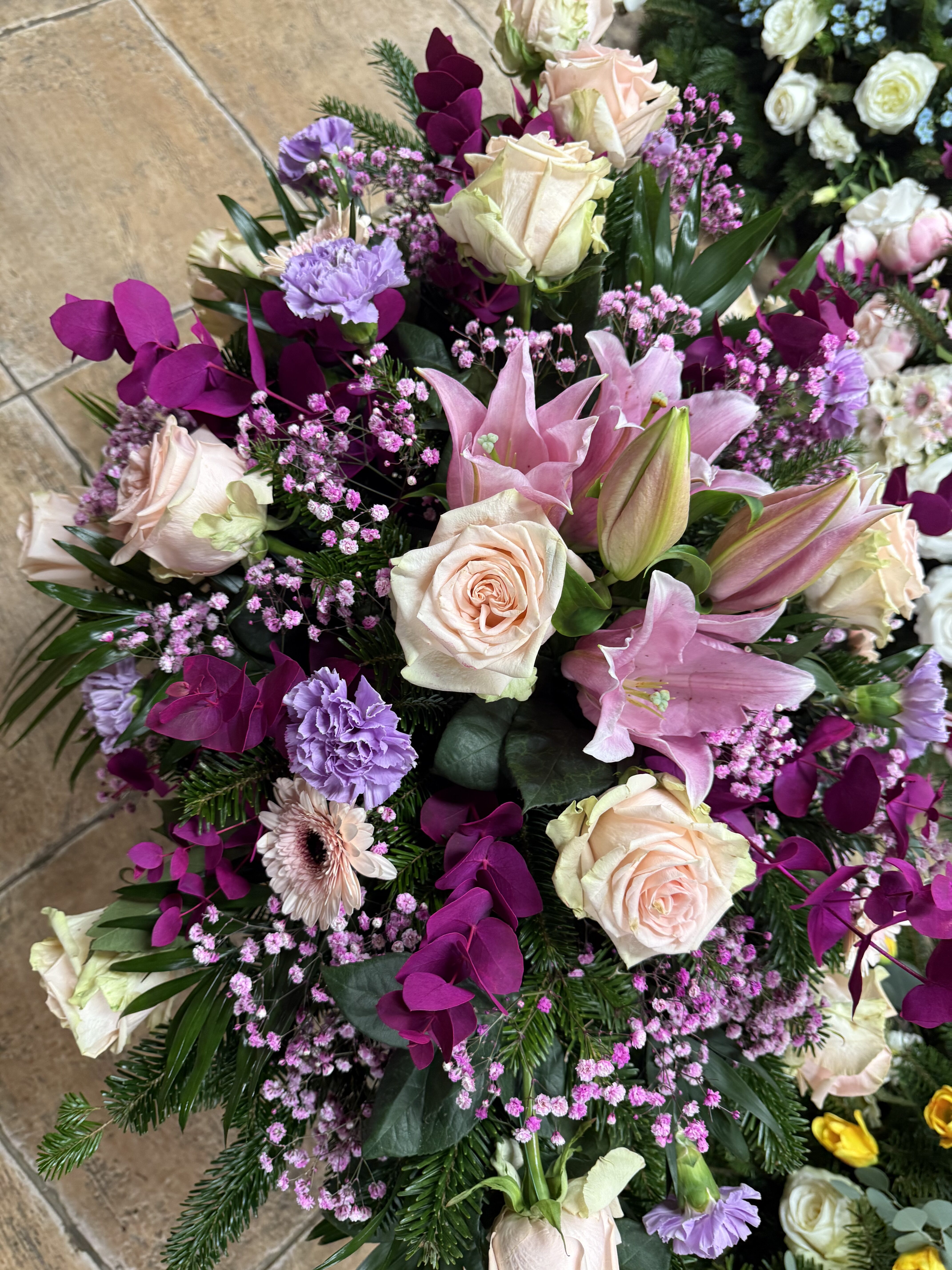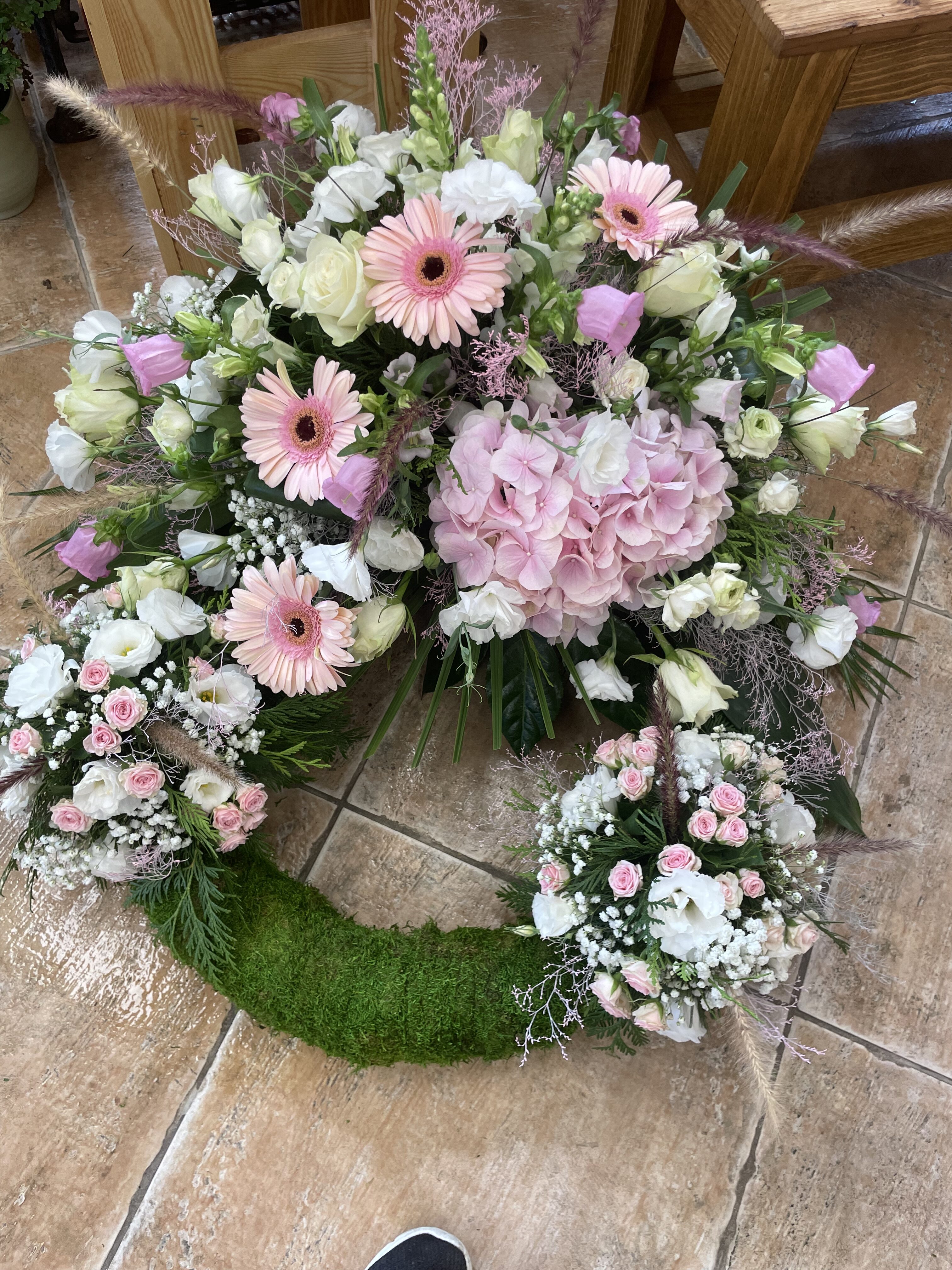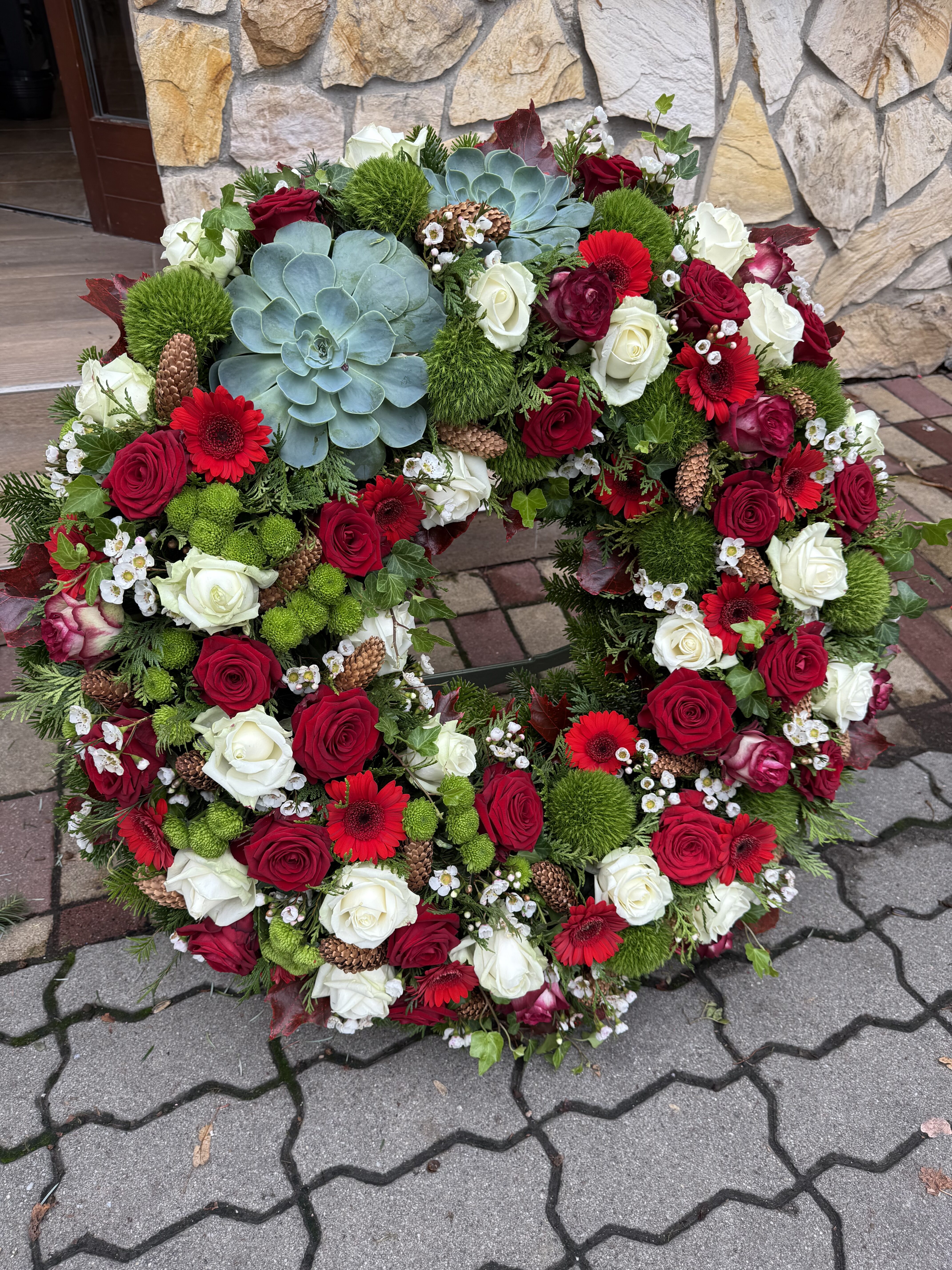 Naše vence sú starostlivo aranžované z čerstvých kvetov a zelene, aby vyjadrovali úprimnú sústrasť a dôstojnosť. Používame kvety s hlbokou symbolikou – biele ľalie na vyjadrenie pokoja a čistoty, ruže na znak lásky a úcty, chryzantémy na večnú spomienku. Každý veniec je navrhnutý s dôrazom na estetiku a pietu, aby dôstojne dopĺňal poslednú rozlúčku.